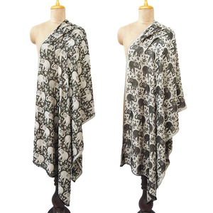 Black Elephant Reversible Rectangle Viscose Shawl WS40
