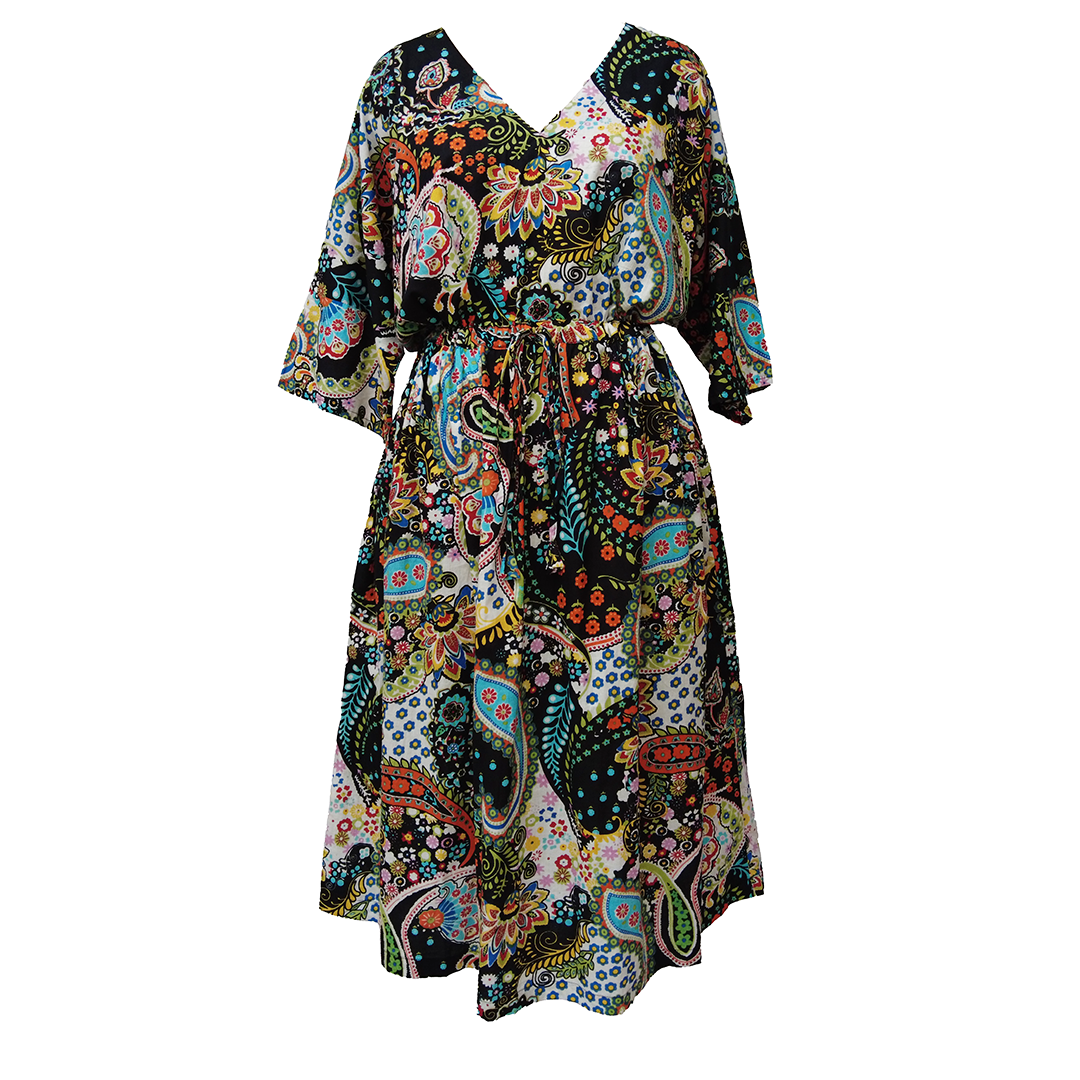 Black Paisley Cotton Maxi Dress UK Size 18-32 SSF52
