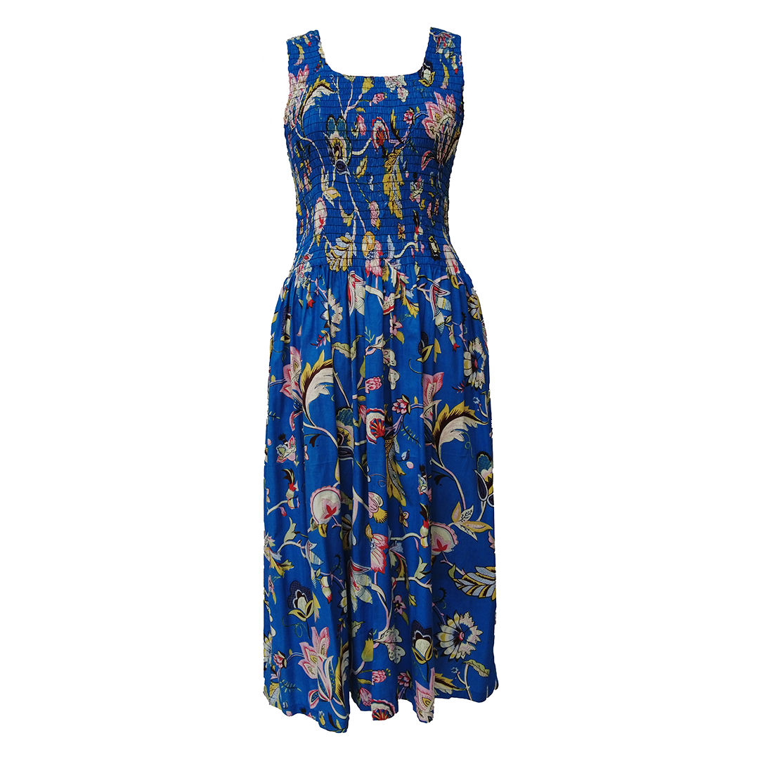 Blue Floral Cotton Maxi Dress UK One Size 14-24 EE17