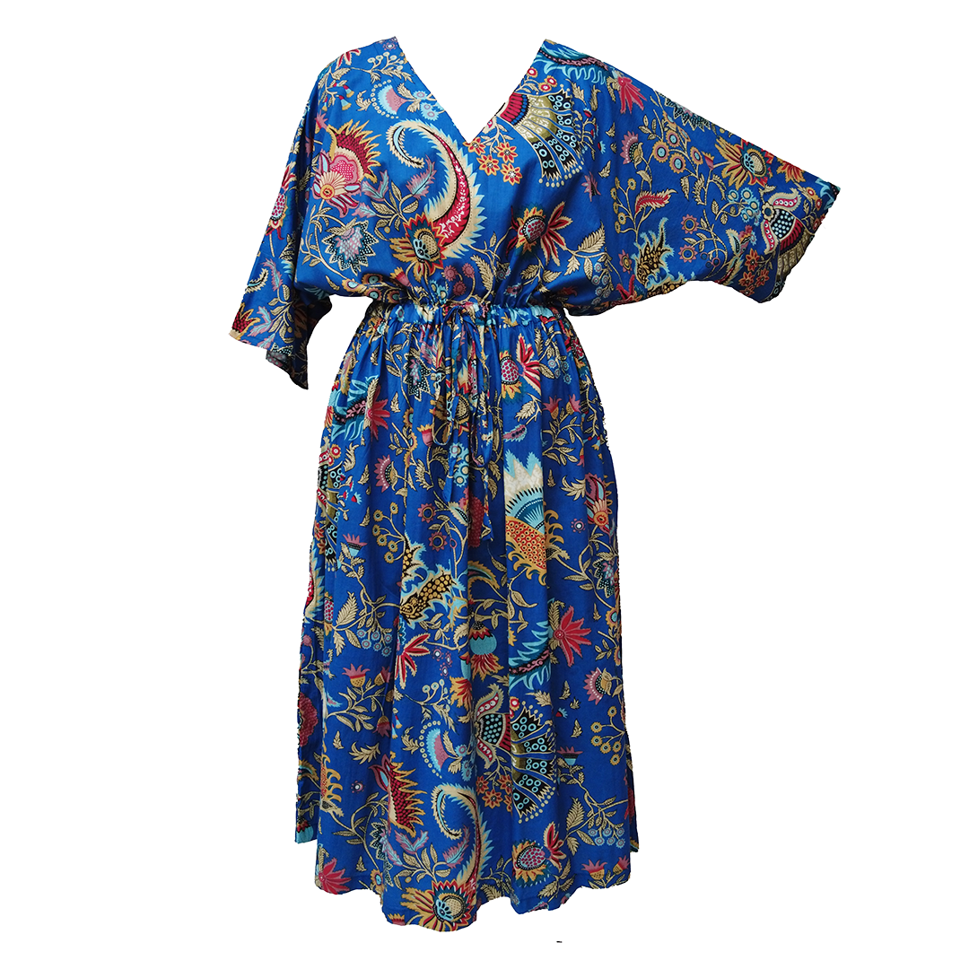 Royal Blue Artistic Cotton Maxi Dress UK Size 18-32 SSF54